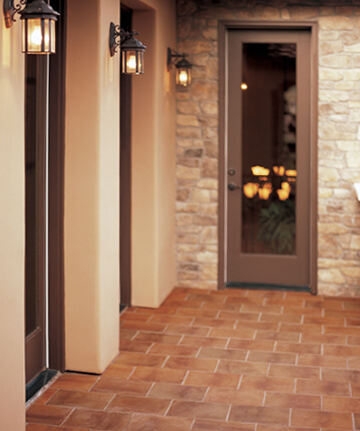 Quarry tiles are dense, unglazed tiles that are well suited to outdoor applications. They typically are earthtone colors of terracotta-reds, browns, and greys. They are perfect for patios and walkways as well as commercial floors where